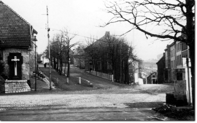 Dass hier zwei Straßen parallel zueinander verlaufen kommt nicht von ungefähr. Im Mittelalter und in der frühen Neuzeit bildete die Böschung zwischen den beiden Wegen die Grenze zwischen dem Grundeigentum des Herzogs von Limburg und dem des Herrn von Eupen bzw. ab 1648 der Herrlichkeit Eupen. (Bild 1)