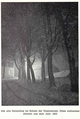 Jahrzehntelang war der Rotenberg die Ablagerungsstelle für allen möglichen Schutt und Unrat und bot der Bürgerschaft, namentlich dem bauenden Publikum, weil nahe bei der Stadt, eine willkommene Gelegenheit, sich desselben zu entledigen. Tausende und abertausende Karren sind dortselbst angeschüttet worden, bis das Gelände die jetzige Höhe erreichte, um endlich planiert und chausseemäßig ausgebaut zu werden, um eine wertvolle Verbindung der Ober- und der Unterstadt herbeizuführen. Die Straße konnte allerdings an der Krone breiter und die Steigung durch weiteres Ausfüllen der Mulde vor dem Schlachthofe, die noch sehr aufnahmefähig war, verbessert werden. Dass dies nicht geschehen ist, lag zu jener Zeit an der Stadtratsmajorität, welche einen kleinen Mehrkredit zum Ankauf eines dazu benötigten Streifens aus der Ettersten-Wiese zwecks Erbreiterung der Straßenunterlage verweigerte.