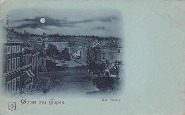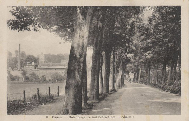 Die Straße vom Schlachthof über den „Bach“ bis hinauf zur Anhöhe, wie wir sie heute kennen und „den Rotenberg“ nennen, ist ein künstlich angelegter Straßenbau aus dem 19. Jahrhundert. Sie ist ein Werk des damaligen Eupener Oberbürgermeisters Peter Becker (1850-1881). Mehrere Jahrzehnte lang ließ derselbe hier die Aushuberde und den Bauschutt anfahren, wodurch sein erhöhte Fahrbahn entstand, die im Jahre 1875 als neue Verkehrsstraße eingeweiht wurde. Vor dieser Zeit verlief der Fuhrverkehr seitlich durch die Wiesenflur „Ettersten“ und stieg dann steil zur Anhöhe an.