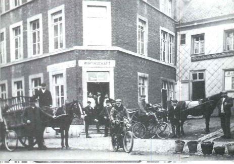 Wenn der Straßen der städtischen Umgebung gedacht wird, so kommt vor allem der „Rothe Berg“ in Betracht, denn bei keiner andern lag der Urzustand so im Argen wie hier, keine ist mit so geringen Mitteln auf ihren verhältnismäßig guten Stand gebracht worden wie die Rotenbergstraße. Während in früheren Jahren der Personenverkehr an den kleinen Cloot'schen Häusern vorbei einer ziemlich steilen schiefen Ebene hinunter zunächst durch die erste Ettersten-Wiese, dann unter Benutzung eines über dem Bach liegenden Steges nach Stockem führte, musste das Fuhrwerk den hinter den genannten Häusern heute noch vorhandenen Hohlweg dazu benutzen und in der Nähe des Steges durch den Bach fahren.
