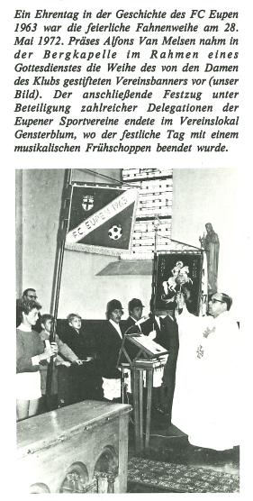 Nach dem Krieg dauerte es bis 1963 bevor eine Handvoll junger Leute sich dazu entschloss, einen offiziellen Klub ins Leben zu rufen. Hierbei stand allerdings der Zufall Pate. Einige Schulfreunde hatten im Kreise ihres Stammtisches gelegentlich Fußball gespielt, was zur Gründung des „FC Weser“ führte. Gegner waren in der ersten Zeit vorwiegend Betriebs- und sogenannte Thekenmannschaften aus dem Eupener und Aachener Raum. Der Versuch, sich mit einem bei der Union Belge eingetragenen Verein zu messen, scheiterte an dem Verbot des Belgischen Fußballverbandes, nach dem offizielle Klubs keine Spiele gegen „wilde Mannschaften“ austragen dürfen. Die herbe Enttäuschung der jungen Eupener Gelegenheits-Amateure über das Scheitern dieser geplanten Auseinandersetzung bewirkte eine Trotzreaktion. Der Stein, der nunmehr ins Rollen gebracht war, führte innerhalb weniger Wochen zu Beginn des Jahres 1963 zu mehreren Versammlungen, in deren Verlauf sich herausstellte, dass in der Öffentlichkeit die Gründung eines Vereins weitgehend begrüßt wurde. Am 24. August 1963 erkannte die Union Belge den FC Eupen als vollwertiges Mitglied an. Vor Beginn der Meisterschaft 1964/65 sorgte eine Nachricht aus Brüssel für Aufregung: Die Union Belge lehnte das Spielfeld am Stockbergerweg wegen der nicht ausreichenden Größe als Austragungsort offizieller Meisterschaftsbegegnungen ab und stellte die Vereinsleitung kurzfristig vor die Alternative, entweder einen anderen Platz zu finden oder den Spielbetrieb einzustellen. Als einziger Ausweg blieb ein Hilferuf an die Stadtverwaltung, die dem FC die Benutzung des Stadions gestattete.